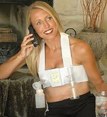 This clever product is a must-have for any breast pumping mother. It holds both collection bottles securely in place so a moms hands can be completely free. It also ensures proper suction and positioning which results in more efficient milk collection.  Now moms can engage in light activity or movement without having to worry about spilling expressed milk. Now moms can read a book, talk on the phone or simply sit back and relax while pumping. It's ideal for moms suffering from painful carpal tunnel syndrome. Simply lower the panels the nursing bra and wrap around your chest.  Slide the breast-pump shields into the patented buttonhole openings, align with your nipples, and begin pumping. A velcro closure accommodates changing body profiles. A plush neck strap adds further comfort and support. Works with most single and double breast pump systems.